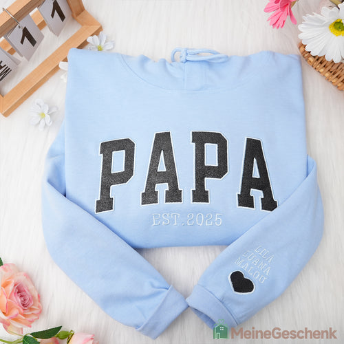 Personalisierter Kapuzenpullover mit gesticktem Namen und Datum und optionalem PAPA-Design Einzigartiges Geschenk für die Familie