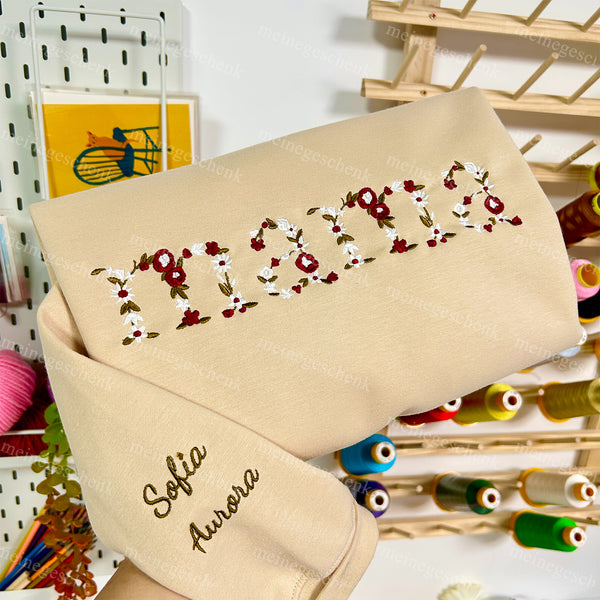 Besticktes Mama Sweatshirt Blumenmuster Porträt – Das Geschenk für Mama und Oma