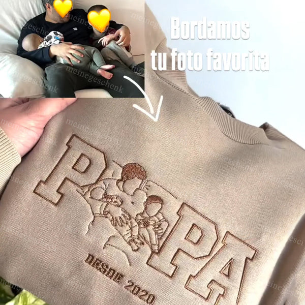 Personalisiertes Sweatshirt mit Papa- oder Papi-Porträt, besticktes Geschenk nach Foto