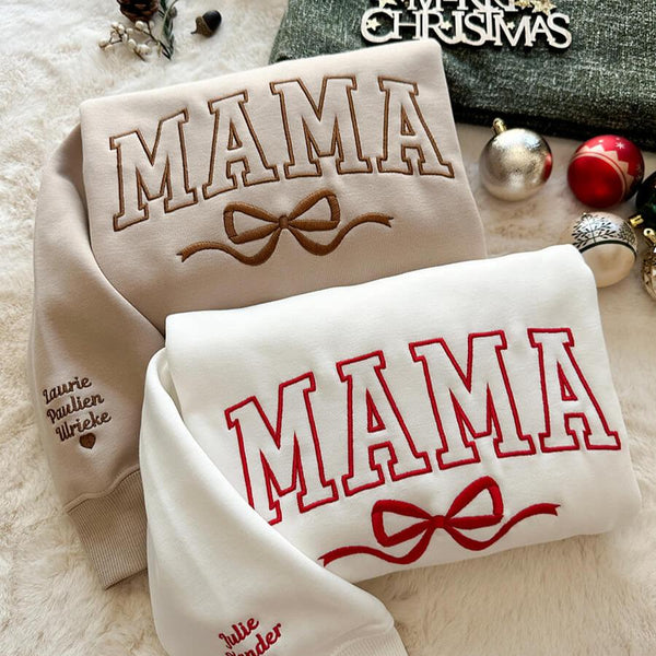 Besticktes Mama Schleifen-Sweatshirt mit Kindernamen, Geschenkidee für Mama