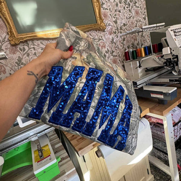 Personalisiertes Pailletten-Sweatshirt MAMA mit Glitzerbuchstaben im Vintage-Stil – das perfekte Muttertagsgeschenk für Mama