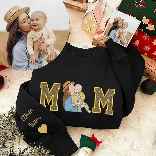 Individuell besticktes Mama-Sweatshirt mit dem Namen des Kindes auf den Ärmeln