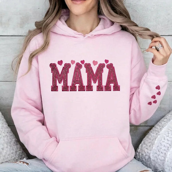 Benutzerdefiniertes Mama-Sweatshirt mit besticktem Kindernamen-Ärmel