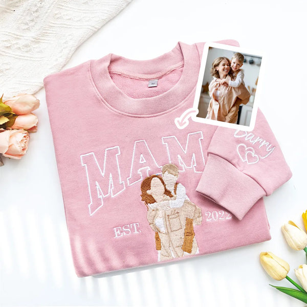 Mama-Sweatshirt mit Foto, individuell besticktes Rundhals-Sweatshirt mit Mama- und Kinderporträt, Muttertagsgeschenk, perfektes Geschenk für Mama