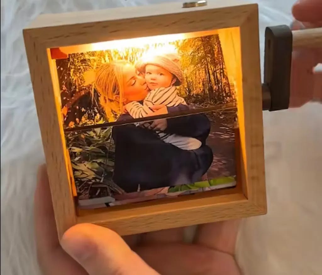 Mit einem charmanten Handkurbelmechanismus ermöglicht Ihnen dieses Fotoalbum, wertvolle Erinnerungen auf ansprechende Weise wiederzuerleben. Die integrierte Beleuchtung sorgt für eine bezaubernde Atmosphäre und macht es zu einem entzückenden Dekorationsstück für jedes Zuhause. Ob Geburtstag, Familientreffen oder einfach eine Hommage an die Abenteuer Ihrer Kinder, dieses Album ist das perfekte Eltern-Kind-Geschenk, das die Bedeutung des Zusammenseins unterstreicht.