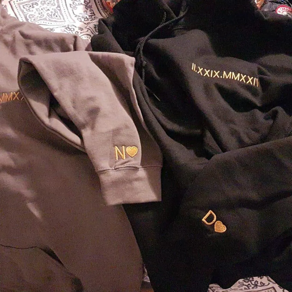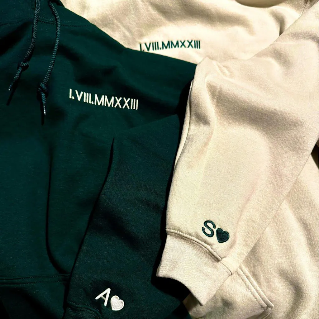 Individuell besticktes Paar-Sweatshirt mit römischen Ziffern und Datum